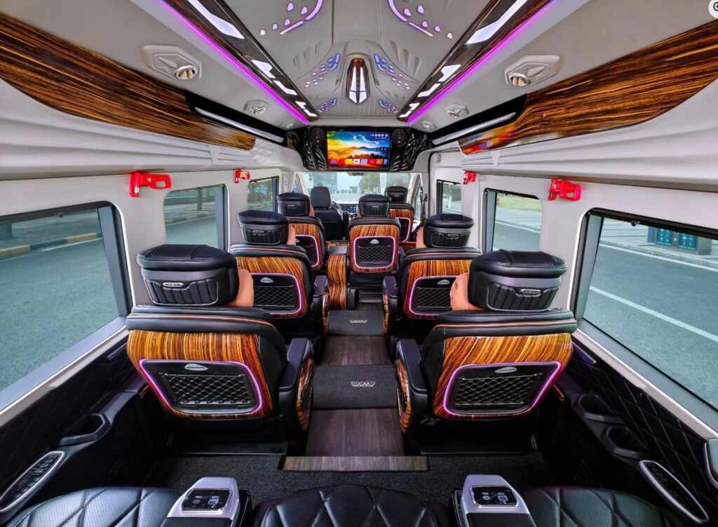 Tivi thông minh (tuỳ cấu hình xe), loa cao cấp, Wifi 4G, sạc USB tại từng ghế